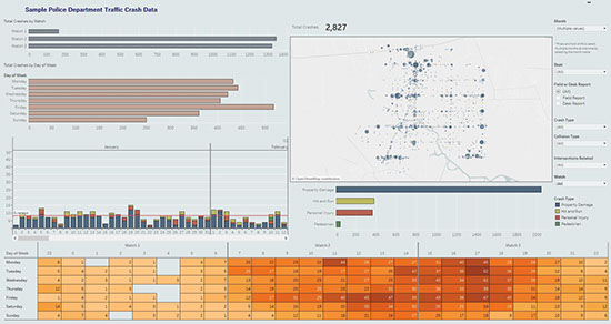 This report displays detailed information on traffic crashes, where reported, Type of crash and citation associated with the crash. The Dashboard is interactive. The report displays the month over month and year over year totals as well as the percentage change.
